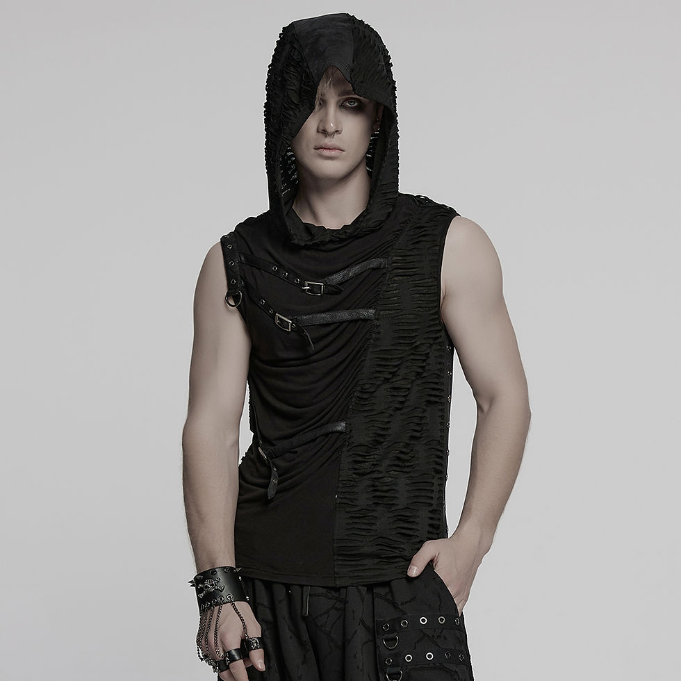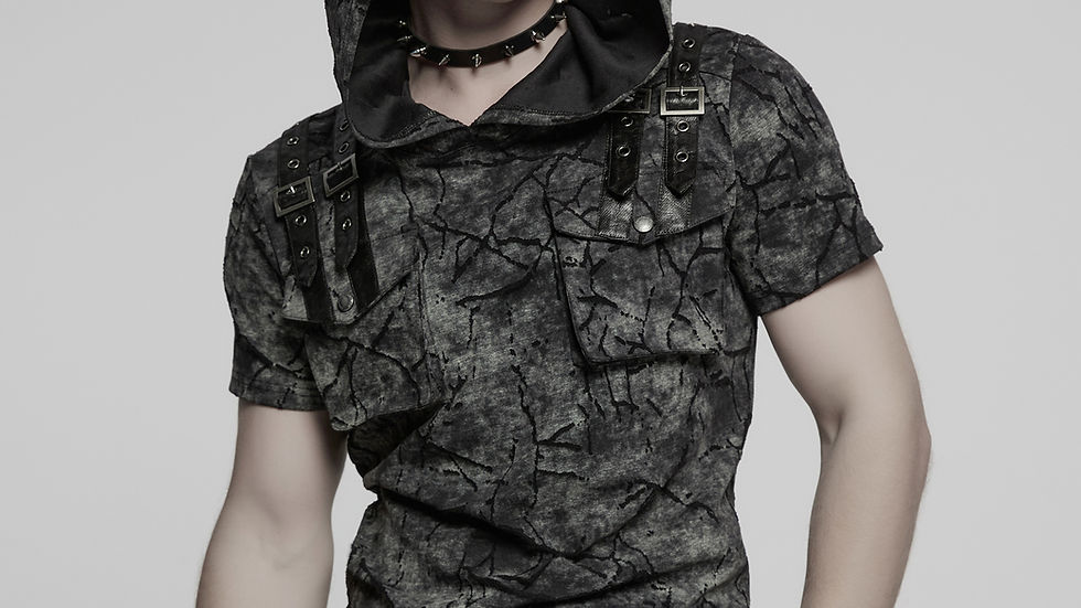 PUNK RAVE-Asymmetrical Spicing Hooded Top