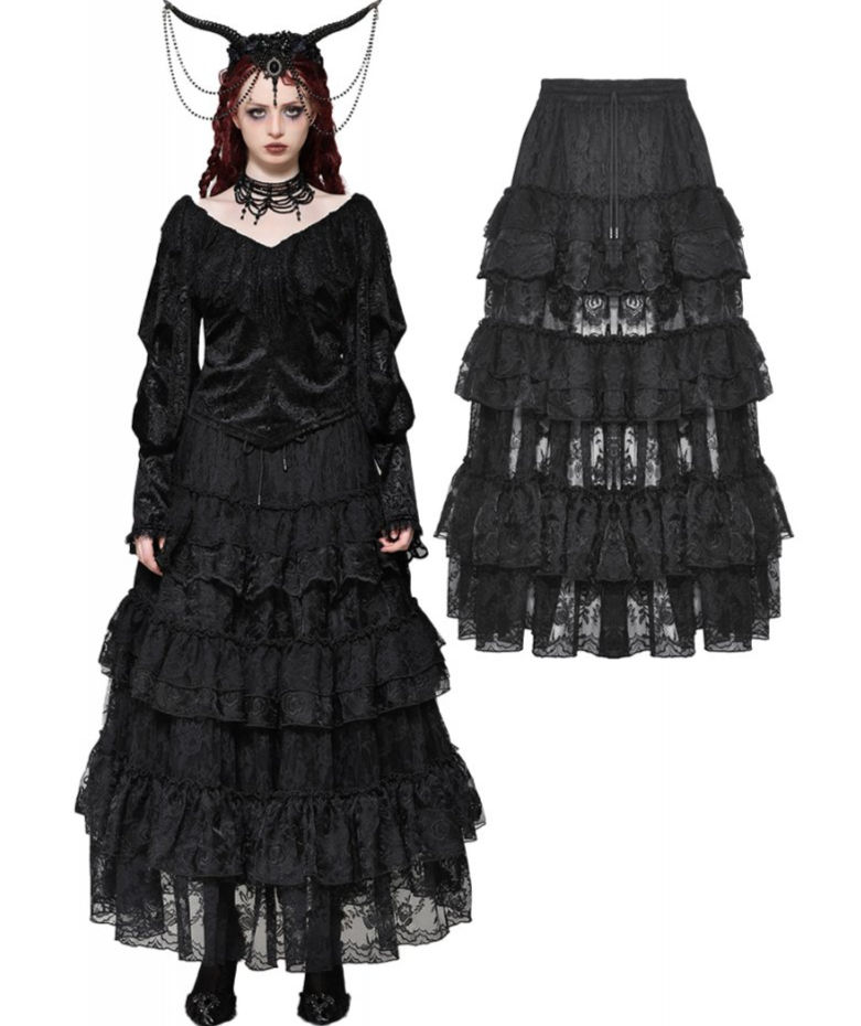 Dark in Love-The Dead Of Night Rhapsody Tiered Maxi Skirt